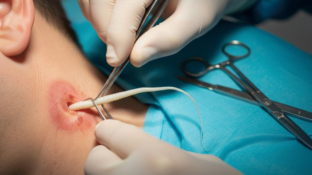 😱⚠️ Shocking Neck Infection: Doctors Remove a Hidden Parasite from Under the Skin