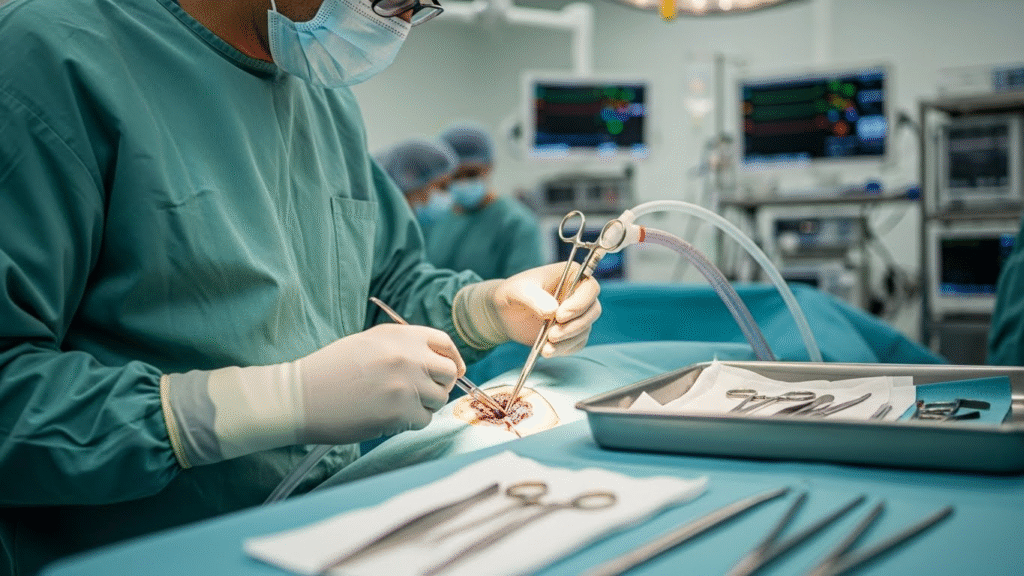 This disturbing image shows doctors pressing a swollen skin area, forcing out dozens of pale, grain-like formations from a deep cavity. At first glance, many viewers panic and assume itβs worms or something supernatural.