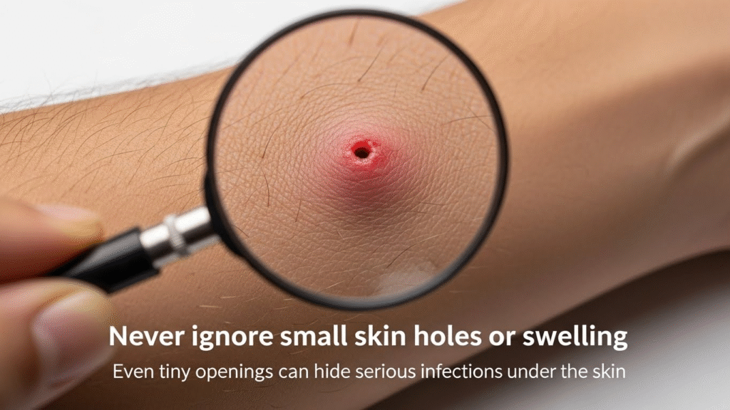 Instead of staying on the surface, the infestation grows deeper, turning a small skin opening into a dangerous pocket beneath the tissue.