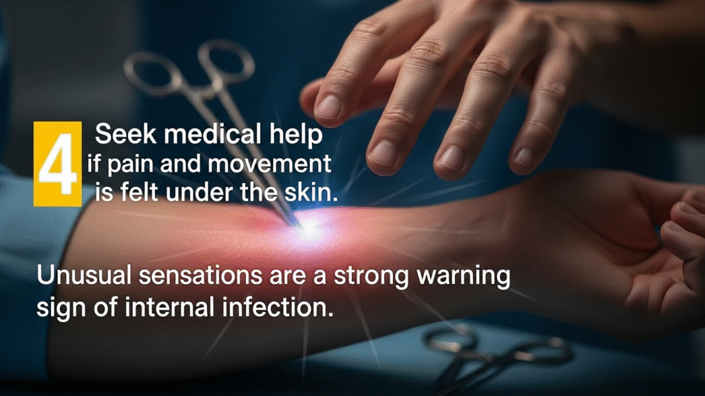 4οΈβ£ Seek medical help if pain or movement is felt under the skin