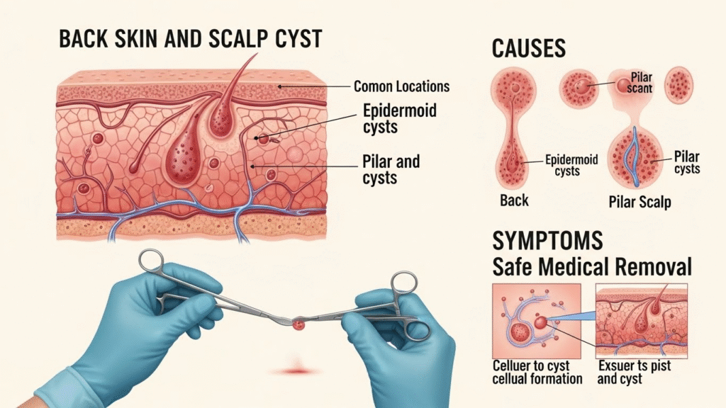 βœ” Sebaceous cysts – oil glands blocked for months or years