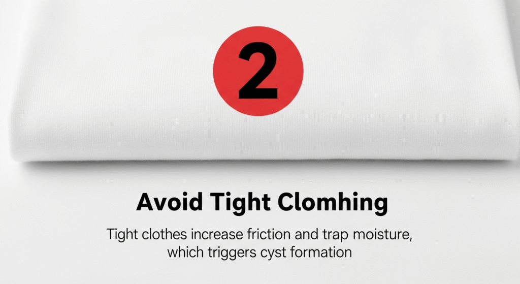 Tight clothes increase friction and trap moisture, which triggers cyst formation.