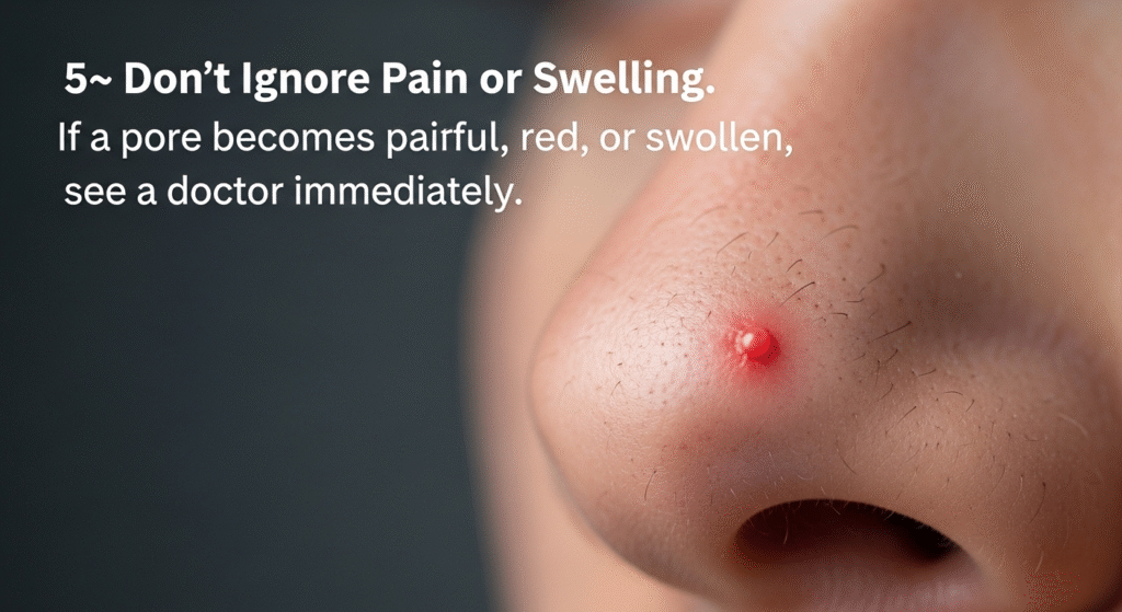 If a pore becomes painful, red, or swollen β€” see a doctor immediately.