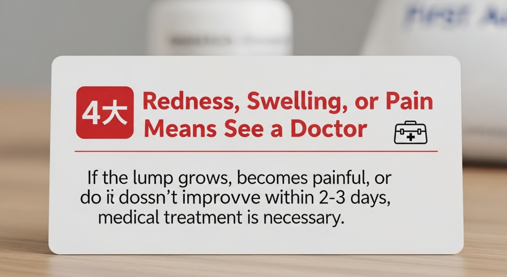 If the lump grows, becomes more painful, or doesn’t improve within 2–3 days, medical treatment is necessary.