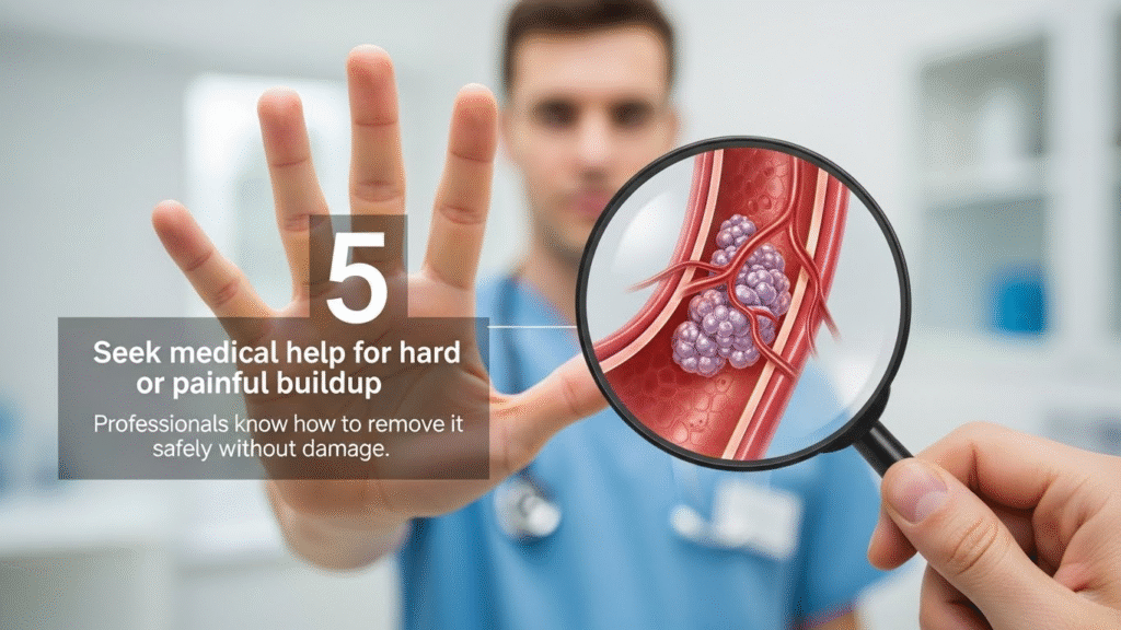 5️⃣ Seek medical help for hard or painful buildup