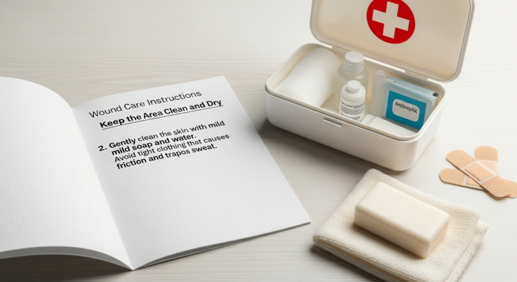 Gently clean the skin with mild soap and water. Avoid tight clothing that causes friction or traps sweat.
