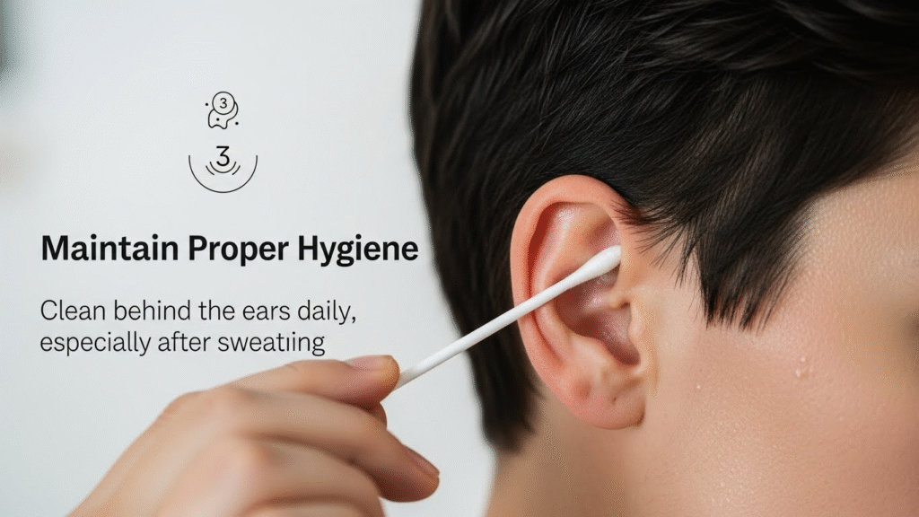 If the area behind your ear becomes red, painful, or warm — see a doctor immediately.