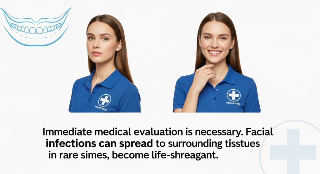 Immediate medical evaluation is necessary. Facial infections can spread to surrounding tissues and, in rare cases, become life-threatening.