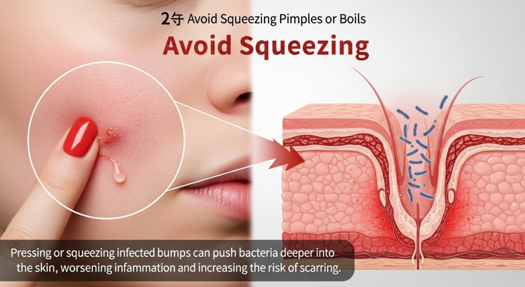 2️⃣ Avoid Squeezing Pimples or Boils