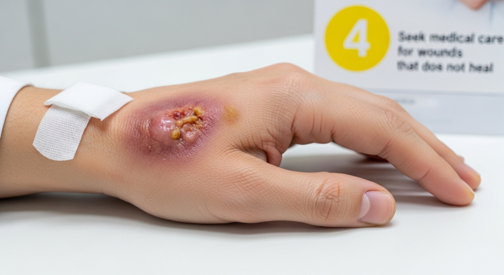 4️⃣ Seek medical care for wounds that do not heal.