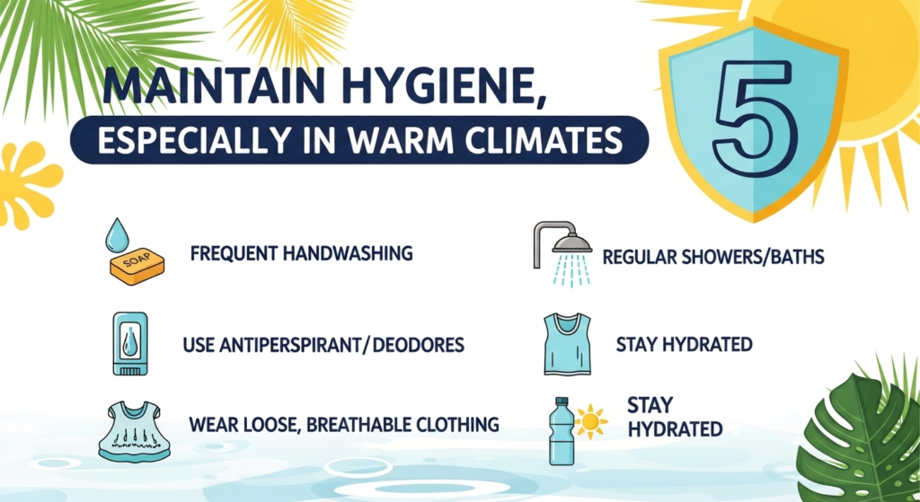 5️⃣ Maintain hygiene, especially in warm climates.