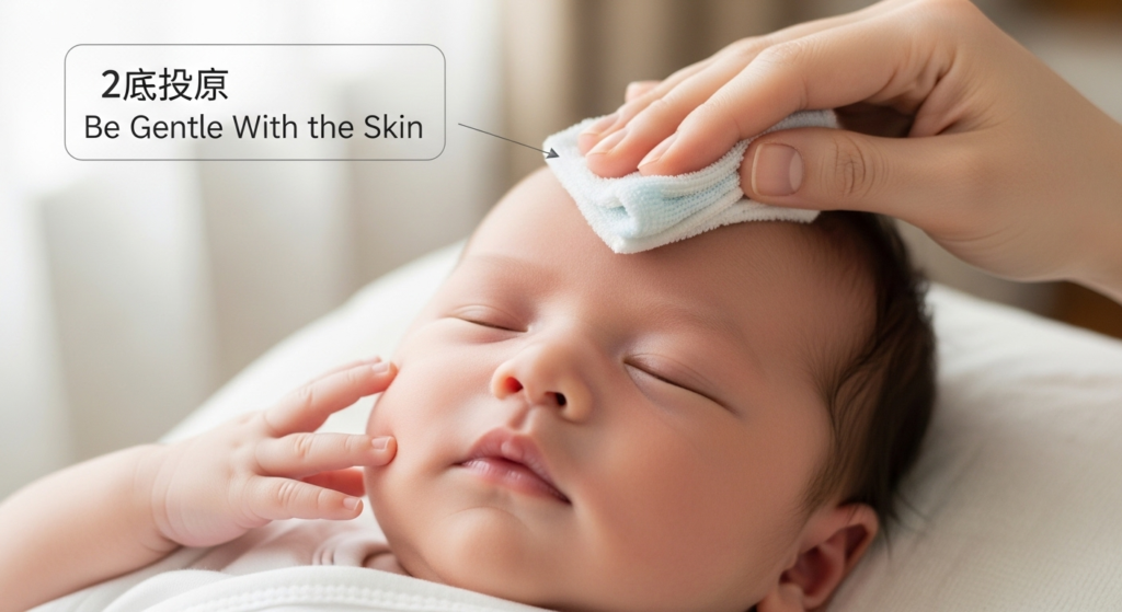 Newborn skin is very delicate. Use soft cloths and avoid harsh rubbing while cleaning.
