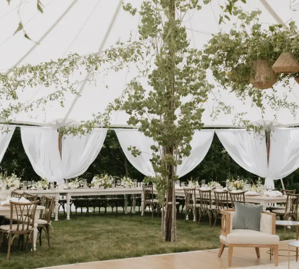 Elegant white tents were strategically positioned throughout the estate, providing shade from the remaining sunlight and creating intimate spaces for friends and family.