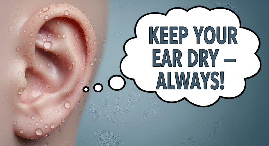 Water can make the infection worse. Avoid swimming or showering without covering your ear. Use cotton balls coated with petroleum jelly to block water while bathing.